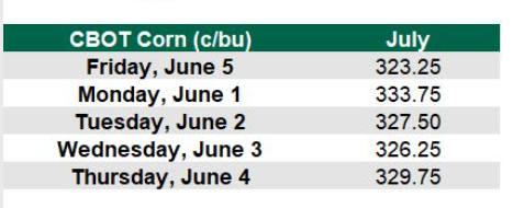 Η έκθεση έδειξε ότι το 97% του καλαμποκιού έχει φυτευτεί στις ΗΠΑ. Το 89% είχε εμφανιστεί και το 60% αυτού του καλαμποκιού είναι σε καλή κατάσταση. Το 21% είναι σε καλή κατάσταση και το 15% είναι σε άριστη κατάσταση.