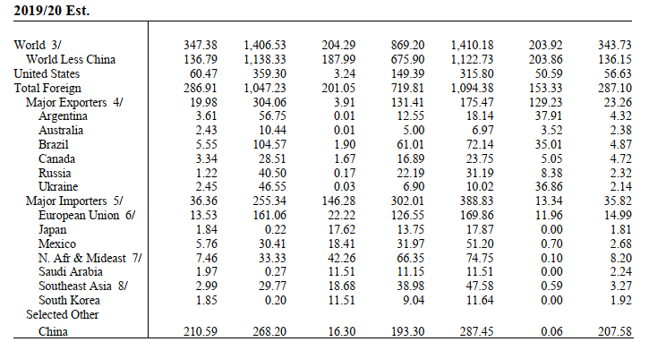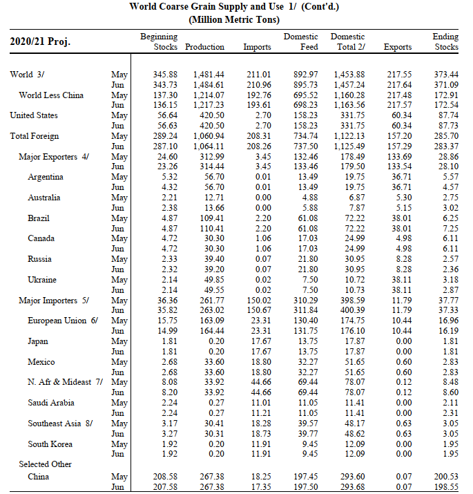 Για το 2019/20, οι εξαγωγές καλαμποκιού αυξάνονται για την Αργεντινή, αλλά μειώθηκαν για τη Βραζιλία για την τοπική περίοδο εμπορίας που ξεκινά τον Μάρτιο του 2020 βάσει των παρατηρηθέντων δεδομένων έως τις αρχές Ιουνίου. Τα αποθέματα ξένου καλαμποκιού για το 2020/21 μειώθηκαν από τον προηγούμενο μήνα, αντικατοπτρίζοντας κυρίως τις μειώσεις για την Κίνα, την Αργεντινή, τη Νότια Αφρική και την Παραγουάη, κάτι που αντισταθμίζει περισσότερο από τη Βραζιλία και την Ινδία.
