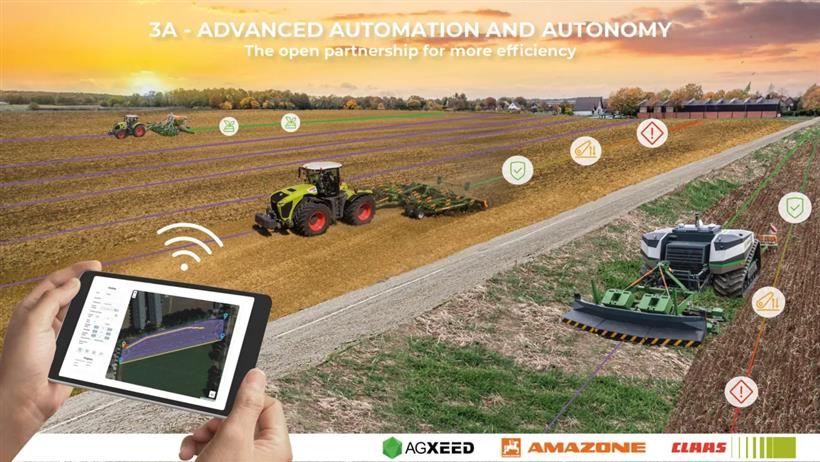 Με αυτό το σκεπτικό, η κοινή εργασία μεταξύ της AgXeed, της Claas και της Amazone, οδήγησε στην ανάπτυξη του λογισμικού σχεδιασμού και εφαρμογής 3A (Advanced Automation and Autonomy), όπου οι αισθητήρες καταγράφουν προβλήματα, όπως ένα μπλοκάρισμα ή ένα χαμένο φρεζάκι, και μπορούν επίσης να παρακολουθούν έναν κύλινδρο πακεταρίσματος για να διασφαλίσουν ότι λειτουργεί με τη σωστή ταχύτητα.