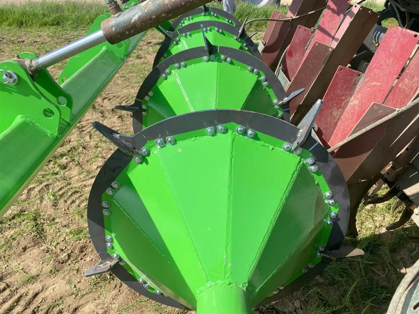 Η εταιρεία, που αναπτύχθηκε για να χωράει πίσω από μια καλλιεργητική μηχανή τεσσάρων σειρών, έχει επίσης σκεφτεί τρόπους για τη μείωση της διάβρωσης του εδάφους. Τα πέντε πτερύγια που είναι προσαρτημένα σε κάθε δίσκο αφήνουν μια σειρά από εσοχές στον πυθμένα για να καθιζάνει το νερό.