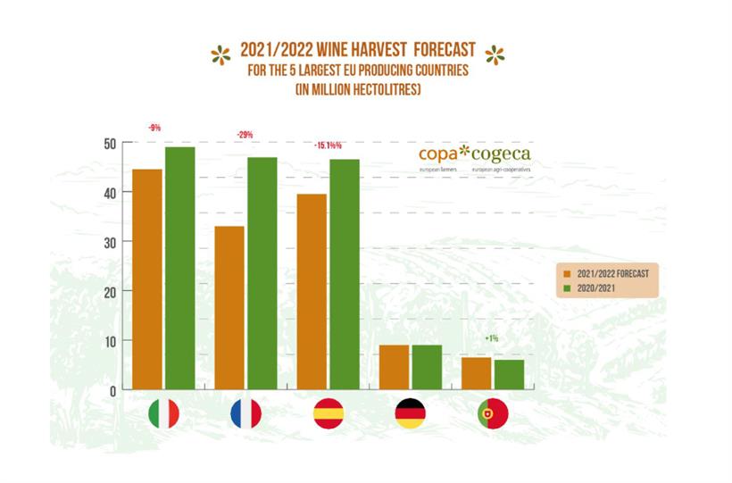 After a year of challenging climatic conditions in southern Europe, the 2021/22 wine harvest is forecasted to be significantly lower and shorter compared to the previous marketing year. Wine production in the three major producing countries, Italy, France and Spain is estimated to range from around 117.3 million hectolitres (hl); an 18% drop from 2020/21. In addition to the spring frosts which decimated approximately 30% of the cultivations in France and northern Italy, hail, droughts and diseases have further accentuated the losses. Notwithstanding the variability and the uncertain climatic conditions, the quality of the grapes is considerably higher and bodes well for quality wines.
