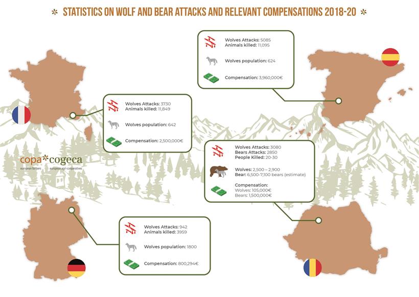 The issue of large carnivores and the damage they inflict upon farmers' livelihoods has been the subject of political debate since the first encounter between predators and livestock farmers. However, despite all the efforts of farmers and the measures put in place by the authorities of the countries concerned in the European Union, the strict protection status of large carnivores renders the measures ineffective, and the actions taken in the context of the debate with a view to establishing harmonious coexistence between humans and wild predators insufficient.