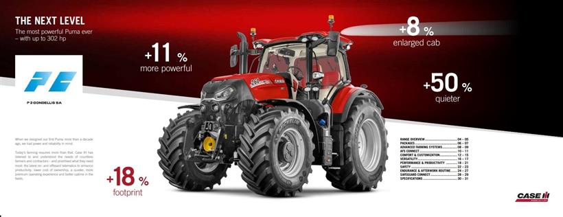 Η υδραυλική υπεροχή του Puma (170 λίτρα/λεπτό παροχή, ανυψωτική ικανότητα 10,4 τόνων πίσω και 6 τόνων μπροστά) και η δυνατότητα διαχείρισης μεγάλων παρελκόμενων το καθιστούν ιδανικό για κάθε είδους εφαρμογή. Την ίδια στιγμή, τα φώτα του με ισχύς 24 LED μετατρέπει τη νύχτα σε μέρα, επεκτείνοντας την παραγωγικότητα ακόμη και πέρα από το φως του ήλιου.