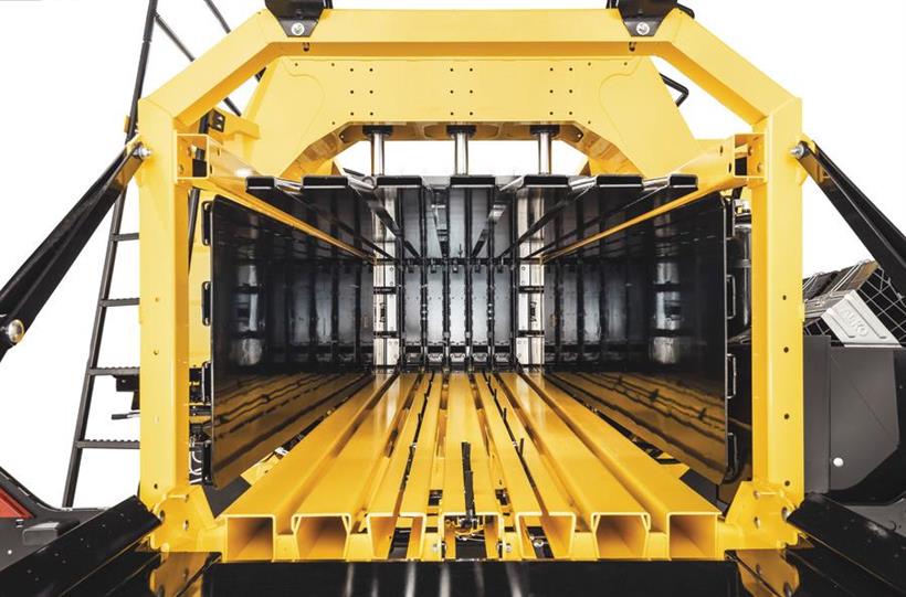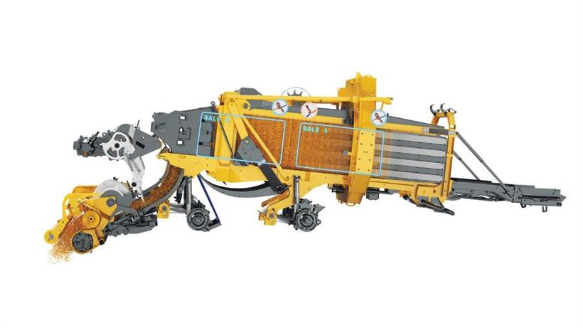 Το νέο, πολύ μεγάλο κουτί φιλοξενεί 36 XL καρούλια σπάγγου που είναι ήδη συμβατά με τα μελλοντικά καρούλια XXL που θα ζυγίζουν πάνω από 15 κιλά. Και τα 36 καρούλια μπορούν να συνδεθούν συγχρόνως, έτσι ώστε να είναι δυνατόν να παραχθούν έως και 1.400 μπάλες χωρίς επαναφόρτωση. Ο σπάγγος είναι επίσης εξαιρετικά εύκολο να φορτωθεί : οι υδραυλικοί άξονες της πρέσας επιτρέπουν στο κουτί να χαμηλώσει κοντά στα έδαφος. Το κουτί σπάγγου διαθέτει ένα υδραυλικό σύστημα και μπορεί να περιστραφεί πλήρως προς τα έξω, κάνοντας τον καθαρισμό ακόμα ευκολότερο.
