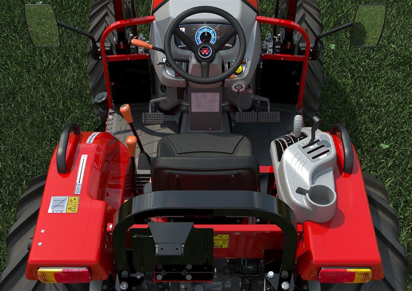 Όλα τα χειριστήρια βρίσκονται σε βολική θέση εκατέρωθεν του καθίσματος. Οι μοχλοί για τον σύνδεσμο και τις βαλβίδες διπλής ενέργειας βρίσκονται ακριβώς αριστερά από το κάθισμα, ενώ στα δεξιά βρίσκονται ο επιλογέας κίνησης δύο/τεσσάρων τροχών καθώς και η αλλαγή εύρους. Υπάρχει επίσης μια βολική ποτηροθήκη στο φτερό.