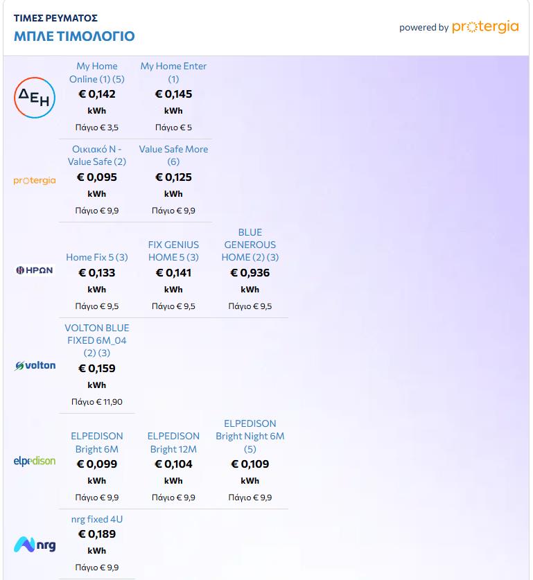 Σημειώνεται ότι τα μπλε τιμολόγια ολιγόμηνης διάρκειας εμφανίζονται ανταγωνιστικά απέναντι στα πράσινα, ωστόσο και τα 12μηνα δεν έχουν μεγάλες διαφορές.