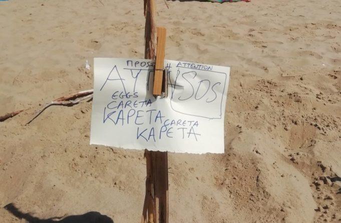 Η ευαισθητοποιημένη πολίτης σκέπασε με προσοχή τα αυγά για να τα προστατέψει, οριοθέτησε την περιοχή με καλάμια και κορδέλες -καθώς η παραλία είναι πολυσύχναστη-, και τοποθέτησε σχετική πινακίδα. Είχε προηγηθεί τηλεφωνική επικοινωνία με τους αρμόδιους.