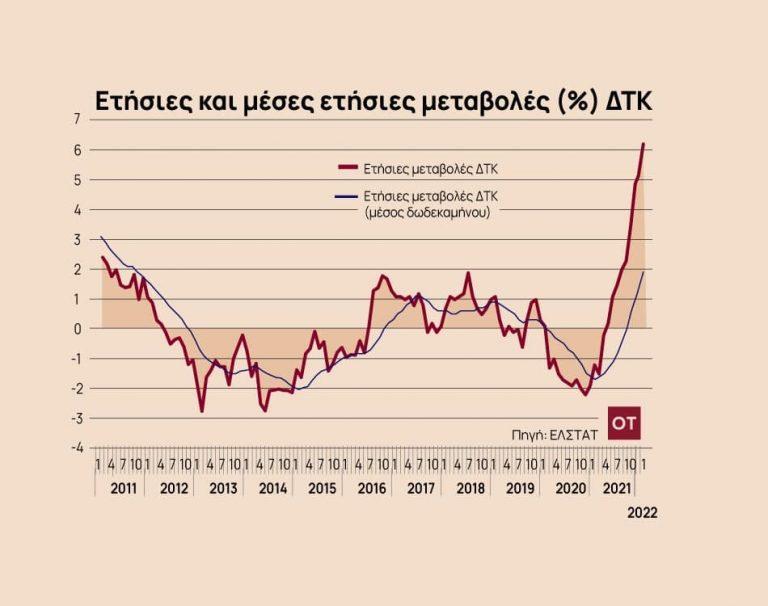 Στο 6,2% διαμορφώθηκε η αύξηση του δείκτη τιμών καταναλωτή τον Ιανουάριο του 2022 έναντι του Ιανουαρίου του 2021, σύμφωνα με τα στοιχεία που ανακοίνωσε η Ελληνική Στατιστική Αρχή (ΕΛΣΤΑΤ). Πρόκειται για τον υψηλότερο καταγεγραμμένο πληθωρισμό σε ετήσια βάση από την είσοδο της Ελλάδας στο ενιαίο ευρωπαϊκό νόμισμα.