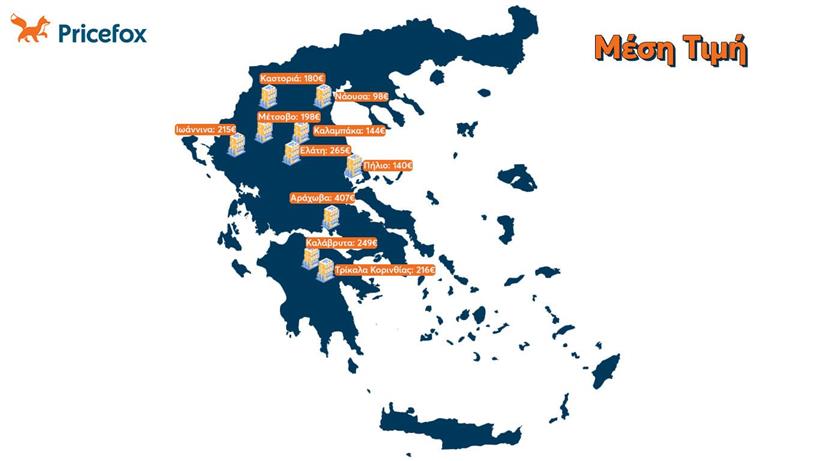 Όπως ήταν αναμενόμενο, κάποιες από τις υψηλότερες τιμές που σημείωσε η έρευνα τουPricefox.gr,συναντώνται σε μερικούς από τους πιο δημοφιλείς ορεινούς προορισμούς όπως η Ελάτη, τα Καλάβρυτα και το Μέτσοβο. Για τα συγκεκριμένα τουριστικά μέρη, μάλιστα, οι ταξιδιώτες θα πληρώσουν κατά μέσο όρο 265 ευρώ ανά διανυκτέρευση, 249 ευρώ ανά διανυκτέρευση και 198 ευρώ ανά διανυκτέρευση, αντίστοιχα κατά μέσο όρο.