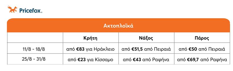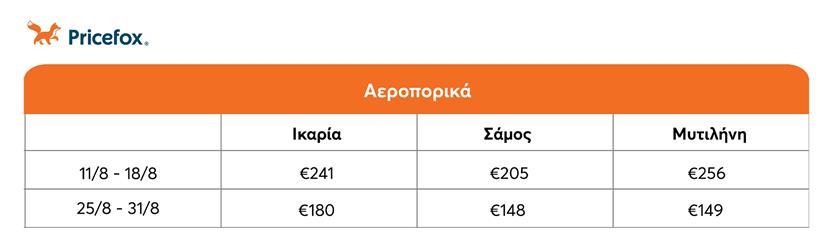 Τιμές αεροπορικών για δημοφιλή νησιά σε 2 περιόδους του Αυγούστου