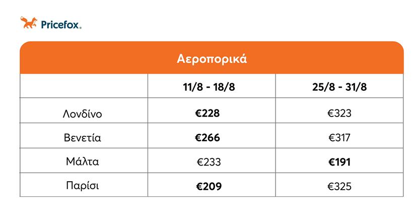 Τιμές αεροπορικών για το εξωτερικό σε σε 2 περιόδους του Αυγούστου