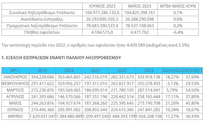 Στοιχεία ληξιπρόθεσμων οφειλών Ιουνίου 2023: