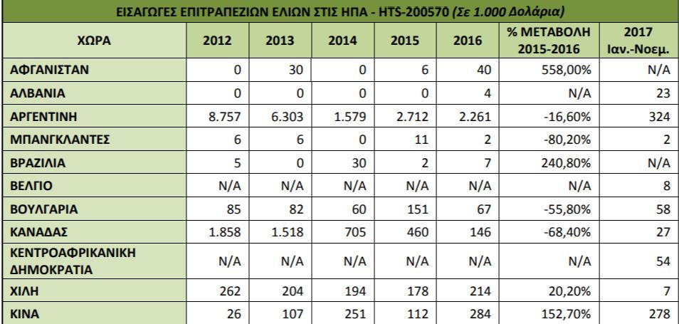 Η ΑΓΟΡΑ ΕΠΙΤΡΑΠΕΖΙΑΣ ΕΛΙΑΣ ΣΤΙΣ ΗΠΑ ‐