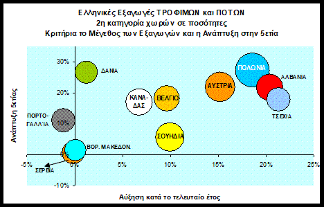 Χώρες στις οποίες η Ελλάδα εξάγει μικρότερες ποσότητες τροφίμων αλλά παρουσιάζουν στα 5 τελευταία χρόνια εξαιρετική δυναμική. Πολωνία, Τσεχία, Αυστρία, Δανία, Αλβανία, Βέλγιο, Καναδάς και Σουηδία. Αποτελούν χώρες στις οποίες παρουσιάζονται ελπίδες και ευκαιρίες, προς τις οποίες πρέπει να ενταθούν οι προσπάθειες.