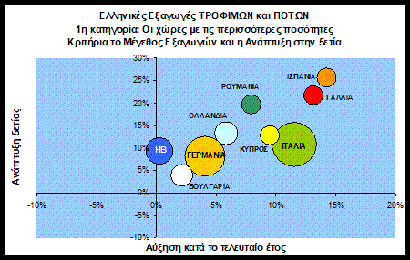Τα 30 κρισιμότερα εξαγώγιμα ελληνικά Τρόφιμα και Ποτά, τόσο ως προς τις ποσότητες όσο και ως προς τις προοπτικές τους, με βάση την ανάπτυξη των εξαγωγών τους στα 5 τελευταία χρόνια, καθώς και τις πιο σημαντικές χώρες στις οποίες πρέπει να στοχεύσουμε, για το καθένα από αυτά, εντοπίζει Μελέτη της εταιρίας GLOBAL GREECE.