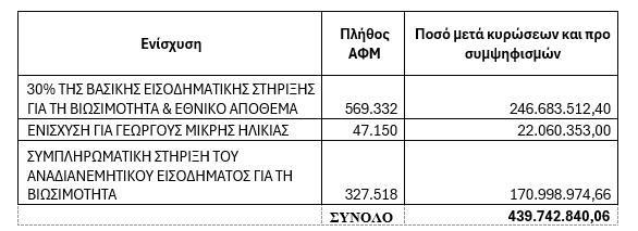 Συνολικά η σημερινή πληρωμή άγγιξε τα 440 εκατομμύρια ευρώ.