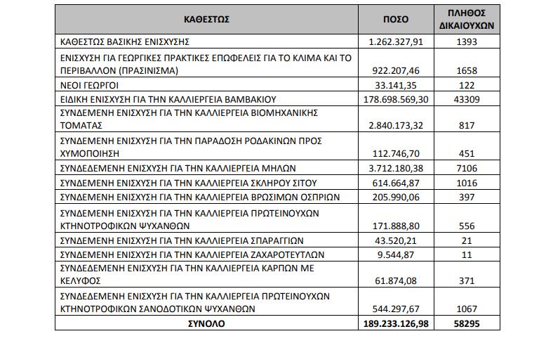 Σήμερα 28.03.2018, θα καταβληθούν οι ακόλουθες ενισχύσεις:
