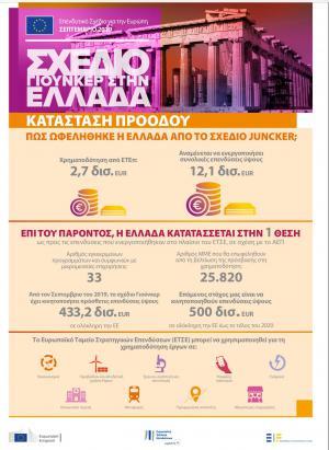 Από τον Σεπτέμβριο 2019, οι συμφωνίες που εγκρίθηκαν στο πλαίσιο του σχεδίου Γιούνκερ ανέρχονται σε χρηματοδότηση ύψους 79,7 δισ. ευρώ και αφορούν και τα 28 κράτη μέλη. Περίπου 972 000 νεοσύστατες, καθώς και μικρές και μεσαίες επιχειρήσεις (ΜΜΕ) αναμένεται να επωφεληθούν από τη βελτίωση της πρόσβασης στη χρηματοδότηση.