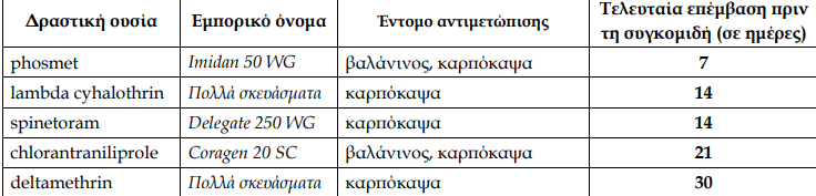 Εγκεκριμένα εντομοκτόνα σκευάσματα στην καλλιέργεια της καστανιάς