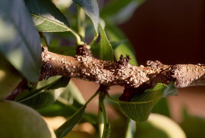 • Το έντομο προσβάλλει και την ακτινιδιά. Συστήνονται εφαρμογές την περίοδο της βλάστησης με θερινά λάδια (Paraffin oil). Να δοθεί ιδιαίτερη προσοχή στην εφαρμογή διότι το έντομο βρίσκεται σε προφυλαγμένες θέσεις.