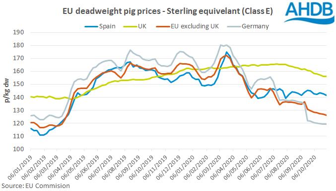 Η μέση τιμή χοιρινού κρέατος στην Ισπανία ήταν 157 ευρώ / 100 κιλά στις αρχές Νοεμβρίου, 0,17 ευρώ πάνω από την τιμή της ΕΕ λόγω της υψηλότερης ζήτησης από τρίτες αγορές. Επί του παρόντος, η Κίνα αντιπροσωπεύει το 40% στο παγκόσμιο εμπόριο χοιρινού κρέατος, αλλά το εθνικό κοπάδι ανακάμπτει γρήγορα, τον Οκτώβριο επίσημα στοιχεία που δείχνουν ότι το απόθεμα των χοίρων επέστρεψε στο 80% από τα επίπεδα πριν από το ASF.