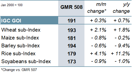 Ο δείκτης δημητριακών και ελαιούχων σπόρων ( IGC ) έδειξε μικρές συνολικές μεταβολές m / m, καθώς οι αρχικές μειώσεις για ορισμένα από τα συστατικά αντιστράφηκαν καθώς ο μήνας προχώρησε.