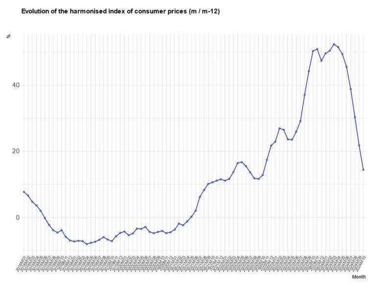 Τον Οκτώβριο του 2024, ο εναρμονισμένος δείκτης τιμών καταναλωτή (ΕνΔΤΚ) για το ελαιόλαδο στην ΕΕ ήταν 14,4% υψηλότερος από ό,τι τον ίδιο μήνα του προηγούμενου έτους και 0,6% χαμηλότερος από ό,τι τον προηγούμενο μήνα, συνεχίζοντας την πτωτική τάση που ξεκίνησε τον Απρίλιο του 2024.
