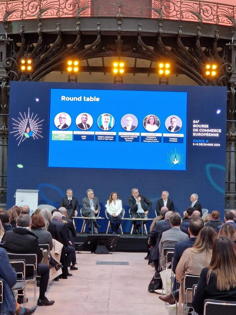 Η στρογγυλή τράπεζα που ακολούθησε σημείο αναφοράς. Επικεφαλής οργανισμών όπως ο Jean-Philippe Puig (Avril), ο Jean-Pierre Touzet (Groupe Crédit Agricole), ο Jean-Francois LEPY (Soufflet Group), η Anne Azam (Syngenta) και ο Christoph Büren (Groupe VIVESCIA) παρουσίασαν τις δράσεις των δομών τους για την αντιμετώπιση των προκλήσεων που θέτει η κλιματική αλλαγή.