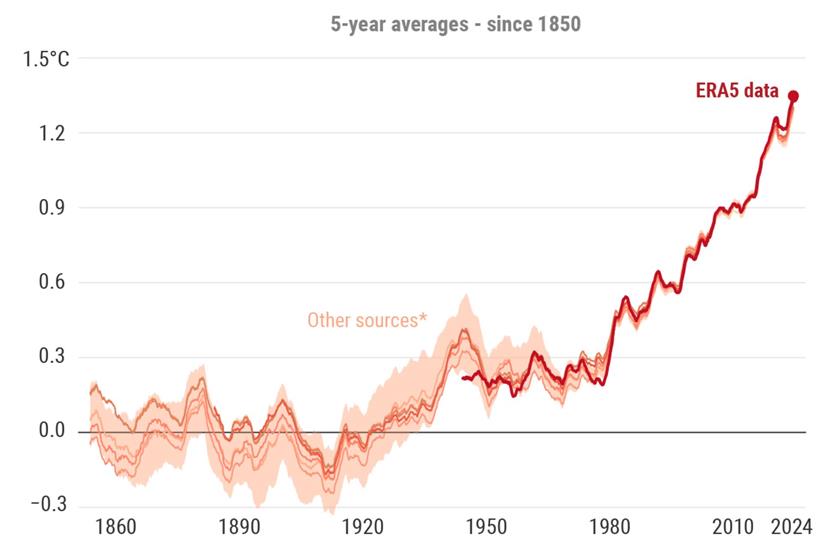 * Τα τελευταία 10 χρόνια (2015-2024) είναι τα 10 θερμότερα έτη στην ιστορία των καταγραφών.