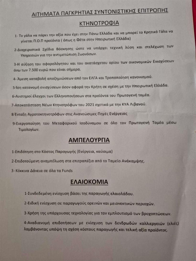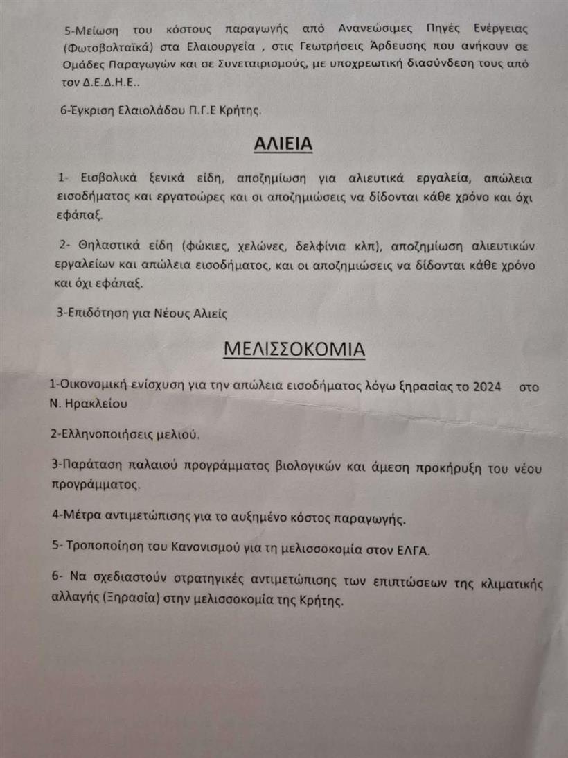 -Επειδή δεν δικαιούμαστε να είμαστε ανακόλουθοι στις απόψεις μας, συναντήσαμε τον ΥπΑΑΤ στην επίσκεψη του στο Λασίθι, ζητώντας απαντήσεις στην συγκεκριμένη λίστα αιτημάτων που του είχαμε θέσει τον 10/2024.