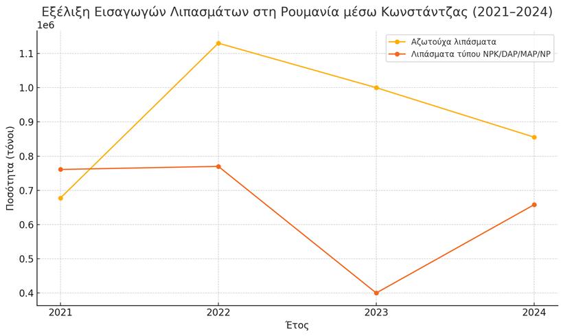 Το λιμάνι της Κωνστάντζας, κόμβος των λιπασματικών ροών προς τη ρουμανική ενδοχώρα, παραμένει νευραλγικό σημείο για τις εμπορευματικές κινήσεις του τομέα. Παρά τα προβλήματα της ξηρασίας, οι εμπορικές ροές αποκαθίστανται με ρυθμούς που αντικατοπτρίζουν την αποφασιστικότητα της γεωργικής παραγωγής να επανέλθει σε τροχιά ανάκαμψης.