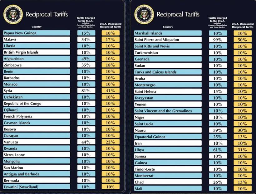 Ούτε το Μεξικό, ούτε ο Καναδάς εμφανίζονται στον νέο κατάλογο. Καθώς έχουν υπογράψει τριμερή συμφωνία για το εμπόριο με τις ΗΠΑ, υπόκεινται σε άλλο καθεστώς.