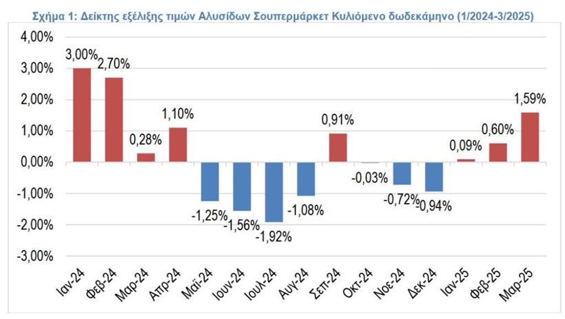 Αμφισβήτηση προκάλεσαν επίσης τα στοιχεία του ΙΕΛΚΑ για αύξηση μόλις 1,59% στις τιμές των προϊόντων στα σούπερ μάρκετ τον Μάρτιο του 2025 σε σχέση με τον περσινό. «Οι πραγματικές αυξήσεις είναι πολύ μεγαλύτερες. Όποιος επισκέπτεται ένα σούπερ μάρκετ, το διαπιστώνει αμέσως», δήλωσε ο κ. Ραυτόπουλος, εκφράζοντας ανοιχτά τις επιφυλάξεις του για την εγκυρότητα των επίσημων ανακοινώσεων.
