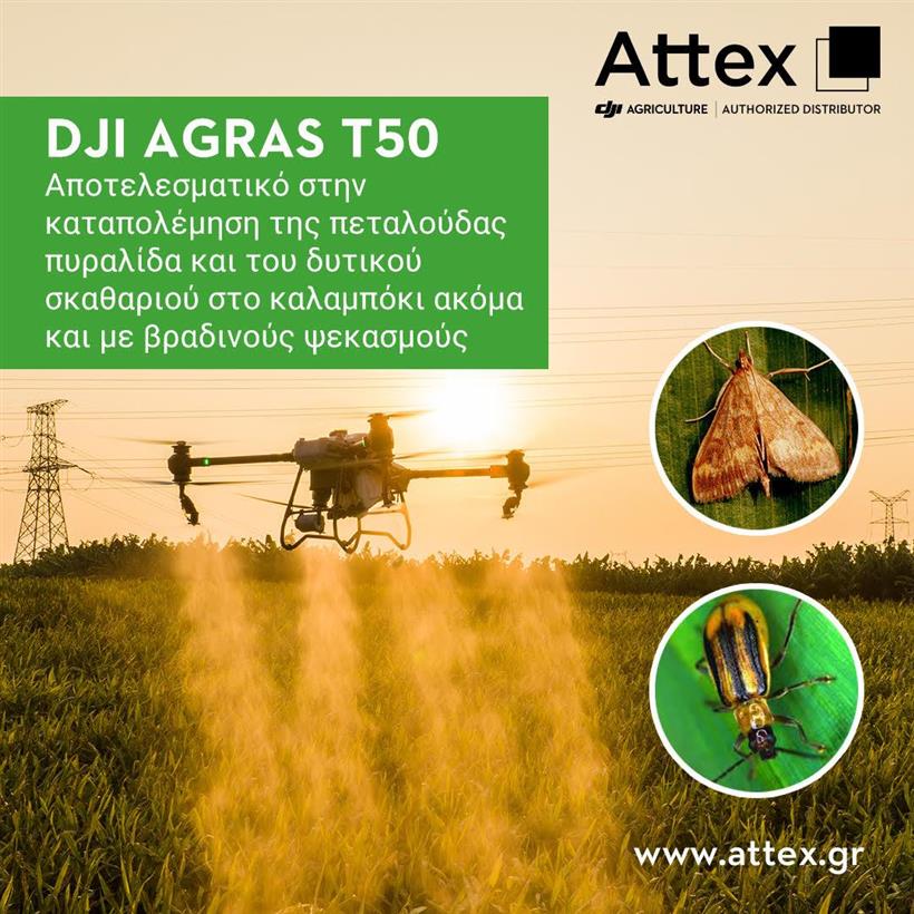 Σε πολλές περιπτώσεις, επιτυγχάνεται έως και 30% εξοικονόμηση σε φάρμακα και νερό, ενώ δεν προκαλείται καμία ζημιά στην καλλιέργεια. Το DJI Agras T50 και DJI Agras Τ25 χρησιμοποιείται ήδη ευρέως στην Ευρώπη σε περιοχές με περιορισμένη πρόσβαση σε μηχανήματα. Στην Ελλάδα, η Attex ως επίσημος εισαγωγέας και αντιπρόσωπος της DJI AGRICULTURE προσφέρει πλήρη υποστήριξη, εκπαίδευση και τεχνική κάλυψη για παραγωγούς και επαγγελματίες. Είναι αποδεδειγμένα αποτελεσματικό, αξιόπιστο και διαθέσιμο άμεσα μέσα από τοπικούς πιστοποιημένους αντιπροσώπους σε όλη την Ελλάδα.