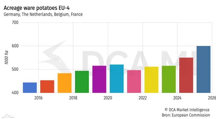 Νέα στοιχεία δείχνουν ότι οι χώρες της ΕΕ-4 (Γερμανία, Γαλλία, Βέλγιο και Κάτω Χώρες) καλλιεργούν πλέον περισσότερα από 600.000 εκτάρια πατάτας προς μεταποίηση, σημειώνοντας αύξηση 7,5% σε σύγκριση με πέρυσι. Η Γαλλία ηγείται αυτής της αύξησης, αλλά και οι υπόλοιπες τρεις χώρες φυτεύουν σε επίπεδα-ρεκόρ.