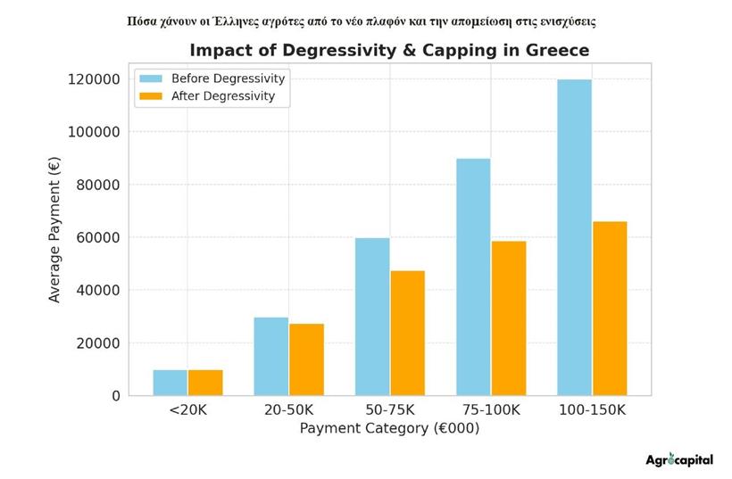 Τι σημαίνει για την Ελλάδα: Στη χώρα μας, όπου η συντριπτική πλειονότητα των εκμεταλλεύσεων είναι μικρομεσαίες και οι ετήσιες πληρωμές συγκεντρώνονται κατά κύριο λόγο κάτω από το όριο των 20.000 ευρώ, η άμεση οικονομική επίδραση της απομείωσης θα είναι περιορισμένη. Μόνο ένα μικρό ποσοστό μεγάλων δικαιούχων, που λαμβάνει ποσά άνω των 50.000 ευρώ, θα δει ουσιαστικές μειώσεις.