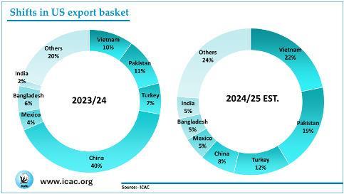 Παρότι η κατανάλωση και το εμπόριο δεν παρουσιάζουν μεγάλες διαφοροποιήσεις, οι εμπορικοί εταίροι αλλάζουν. Χαρακτηριστικό είναι ότι η Κίνα, η οποία αντιπροσώπευε το 40% των εξαγωγών βαμβακιού των ΗΠΑ το 2023/24, πλέον περιορίζεται στο 8%, καθώς οι ΗΠΑ στρέφονται προς αγορές όπως το Βιετνάμ, το Πακιστάν, η Τουρκία και η Ινδία. Η εξέλιξη αυτή, σε συνδυασμό με την πρόσφατη εκτελεστική εντολή των ΗΠΑ που επιτρέπει σε προϊόντα κατασκευασμένα από αμερικανικές πρώτες ύλες να εξαιρούνται από δασμούς εισαγωγής, καθιστά την ιχνηλασιμότητα επιτακτική προϋπόθεση για τη βιομηχανία κλωστοϋφαντουργίας. Την ίδια στιγμή, λιανεμπόροι και διεθνή brands απαιτούν ολοένα και πιο αυστηρά μέτρα διαφάνειας στην αλυσίδα εφοδιασμού.
