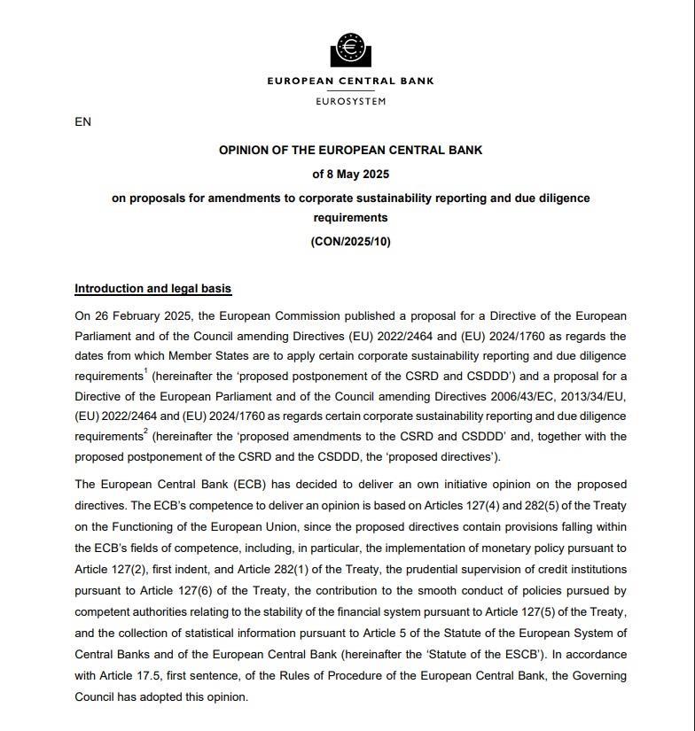 "The proposed reduction in the scope of undertakings subject to sustainability reporting requirements under the CSRD would limit the availability of firm-level data, thereby weakening the Eurosystem’s ability to perform a granular assessment of climate-related financial risks on its balance sheet and within its collateral framework."