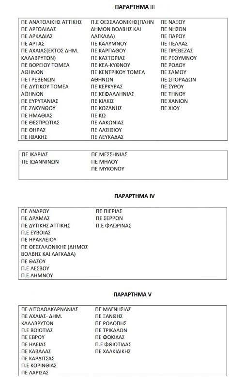 * Αφαιρείται από το Παράρτημα IV η Π.Ε. Κορινθίας, η οποία επίσης εντάσσεται στο Παράρτημα V.
