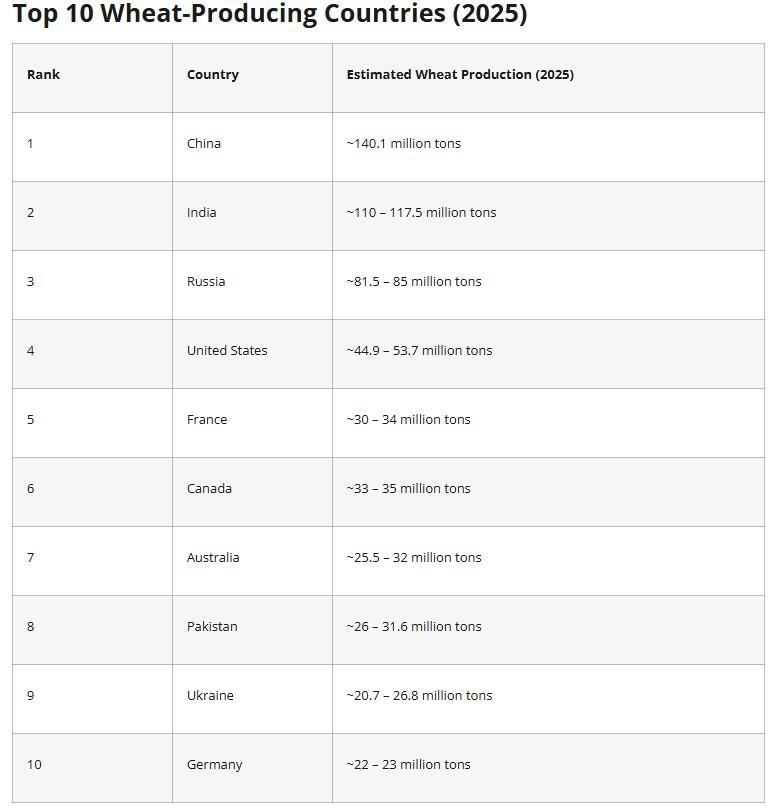 Το σιτάρι είναι από τις σημαντικότερες βασικές καλλιέργειες στον κόσμο και καλλιεργείται σε πολλές χώρες. Το 2025, η Κίνα, η Ινδία και η Ρωσία συνεχίζουν να κυριαρχούν στην παραγωγή σιταριού, ακολουθούμενες από τις Ηνωμένες Πολιτείες, τη Γαλλία και τον Καναδά. Ακολουθεί η επικαιροποιημένη λίστα με τις 10 κορυφαίες χώρες παραγωγής σιταριού το 2025.
