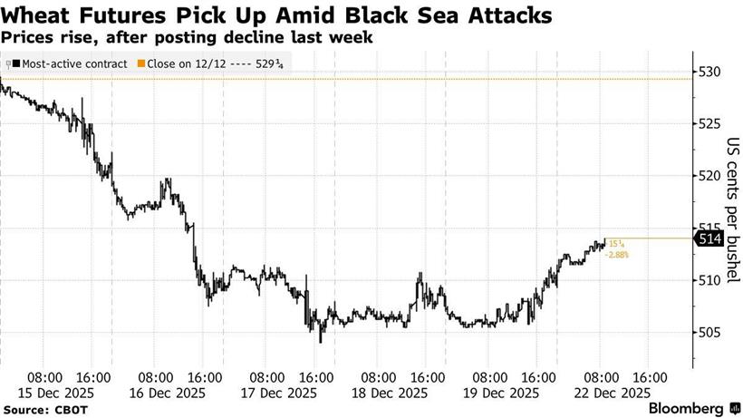 Ανοδικά κινήθηκαν τα παγκόσμια συμβόλαια μελλοντικής εκπλήρωσης σιτηρών και ελαιούχων σπόρων, καθώς η αναζωπύρωση των επιθέσεων σε κρίσιμες υποδομές στην Ουκρανία και τη Ρωσία ενίσχυσε τους φόβους για διαταραχές στις εξαγωγές από τη στρατηγικής σημασίας περιοχή της Μαύρης Θάλασσας. Οι τιμές του σιταριού ανέκαμψαν μετά τη μεγαλύτερη εβδομαδιαία πτώση τους από τον Αύγουστο, με την αγορά να επαναξιολογεί τους κινδύνους για την προσφορά, παρά τα ακόμη επαρκή παγκόσμια αποθέματα.