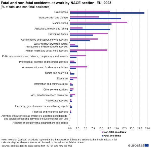 Πράγματι, σύμφωνα με την ΕΛΣΤΑΤ, o αγροτικός κλάδος ευθύνεται για μόλις το 2% των καταγεγραμμένων θανατηφόρων εργατικών ατυχημάτων. Αντιθέτως, σύμφωνα με τη Eurostat, στις αγροτικές εργασίες σημειώνεται το 13% των θανατηφόρων ατυχημάτων. Αντίστοιχα, στη φετινή έκθεση της Eurostat για τον αγροτροφικό τομέα, αναφέρεται χαρακτηριστικά ότι η αγροτική εργασία ενέχει μεγαλύτερους κινδύνους για την υγεία από τον μέσο όρο των επαγγελμάτων.