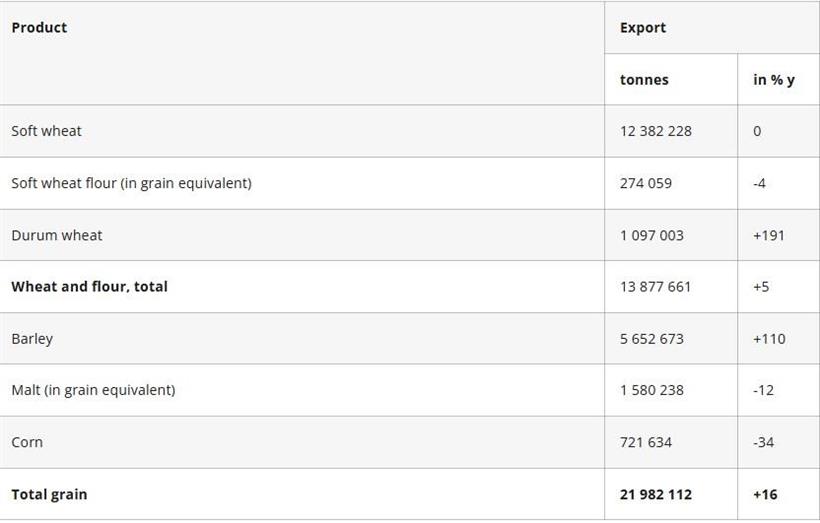 Οι κύριοι προορισμοί για τις εξαγωγές μαλακού σιταριού αυτή τη σεζόν ήταν: Μαρόκο (2.257.300 τόνοι), Σαουδική Αραβία (2.257.300 τόνοι), Αραβία (961.900 τόνοι), Αίγυπτος (908.800 τόνοι), Νιγηρία (670.500 τόνοι) και Αλγερία (662.100 τόνοι).