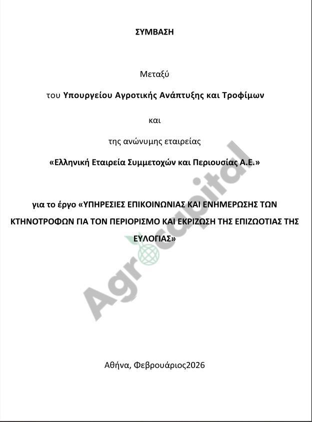 Η σύμβαση, που υπογράφηκε στις αρχές Φεβρουαρίου 2026 μεταξύ του Υπουργείου Αγροτικής Ανάπτυξης και Τροφίμων και της Ελληνικής Εταιρείας Συμμετοχών και Περιουσίας, αφορά την επικοινωνιακή ενημέρωση των κτηνοτρόφων για τον περιορισμό και την εκρίζωση της ευλογιάς, μια παρέμβαση που αποκτά ιδιαίτερη σημασία όταν τοποθετείται δίπλα στις εξελίξεις στο πεδίο και στην ταυτόχρονη εμφάνιση νέων υγειονομικών κινδύνων.