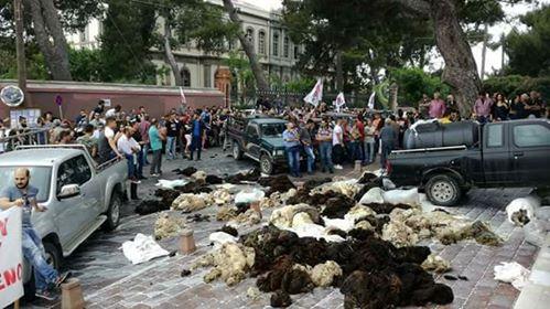 Χτες οι κτηνοτρόφοι και οι αγρότες της Λέσβου πραγματοποίησαν συλλαλητήριο για τις χαμηλές τιμές των προϊόντων.
