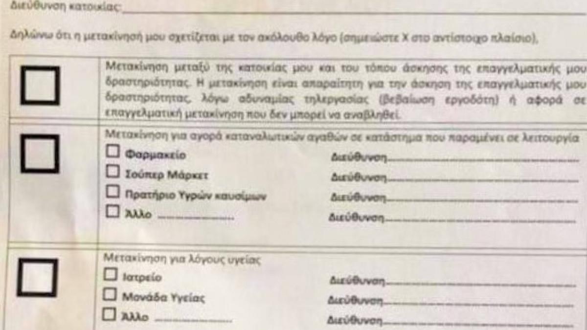 Για τις άλλες περιπτώσεις πχ σούπερ μάρκετ οι πολίτες θα συμπληρώνουν βεβαίωση τύπου Β με ονοματεπώνυμο τόπο προορισμού και αιτία