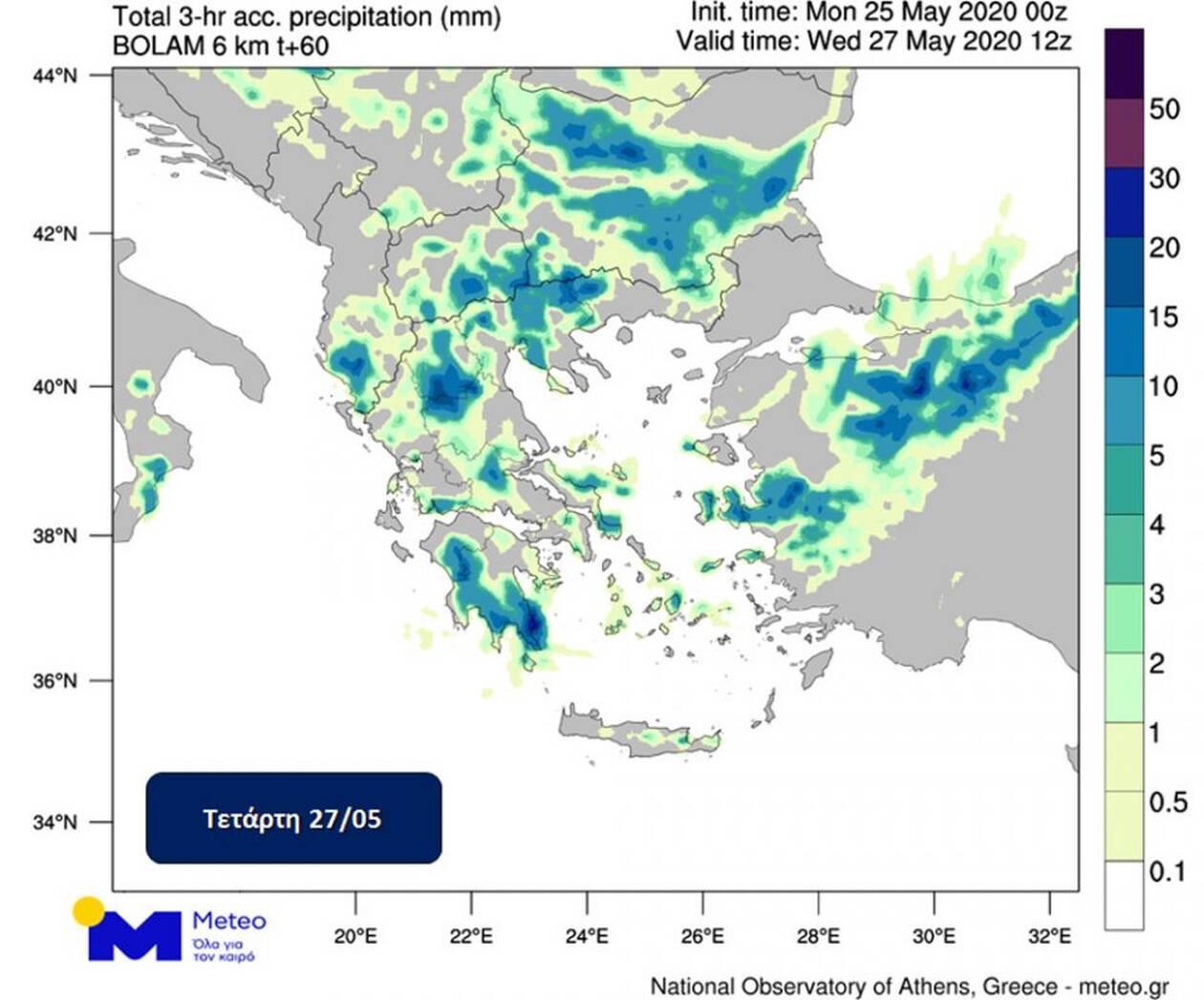 Σύμφωνα με τα προγνωστικά στοιχεία του Εθνικού Αστεροσκοπείου Αθηνών/meteo.gr, από την Τρίτη και σχεδόν μέχρι το τέλος της εβδομάδας, θα εκδηλωθούν σε πολλές περιοχές της χώρας έντονες βροχοπτώσεις και τοπικά ισχυρές καταιγίδες, οι οποίες σε αρκετές περιπτώσεις θα συνοδεύονται από χαλαζοπτώσεις και πολύ ενισχυμένους ριπαίους ανέμους.