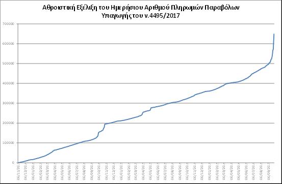 - Από τον Νοέμβριο του 2017, ημερομηνία έναρξης του ν. 4495, έχουν καταβληθεί περίπου 650.000 παράβολα υπαγωγής