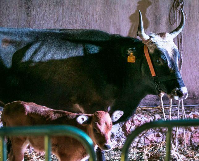 Εικ.10 Αγελάδα φυλής Κατερίνης με το μοσχαράκι της. Φωτ. Από την εκδήλωση «Wise Food Stories», στο Μεταλλουργείο στο Γκάζι για την Αυτόχθονη Ελληνική Στεπική φυλή τύπου Κατερίνης.
