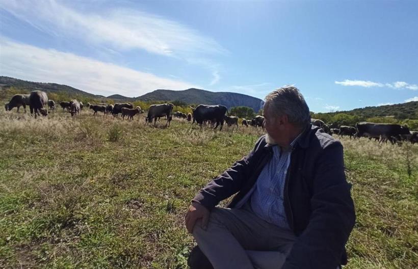 Εικ. 3 Ο κ. Δημήτρη Δήμος από την Αύρα Τρικάλων στην περιοχή της Καλαμπάκας, προσέχει τις εναπομείναντες αγελάδες φυλής Κατερ ως κόρη οφθαλμού.